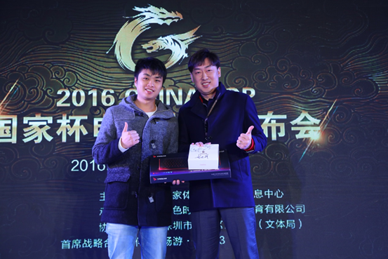 李曉峰(SKY)向大賽承辦方代表贈(zèng)送電競(jìng)設(shè)備