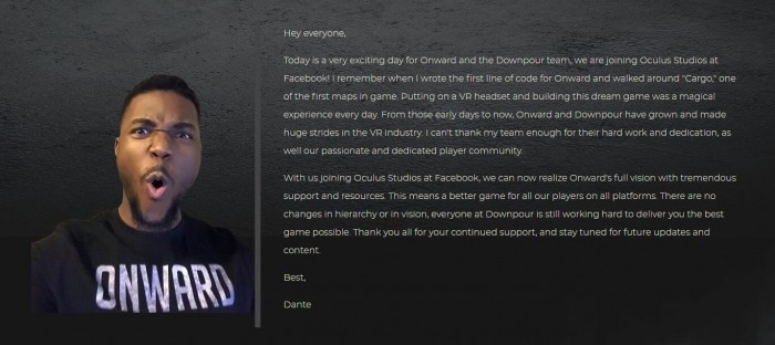 然而,在加入Meta僅僅兩年多后,Buckley便宣布要舍棄掉Downpour Interactive與「Onward」,從Meta離職。而「Onward」于最近才剛發(fā)布了新版本更新,新增了兩款新武器、一張新地圖,以及多項(xiàng)升級(jí)。Buckley離職消息一經(jīng)發(fā)布,各界紛紛唏噓不已。
