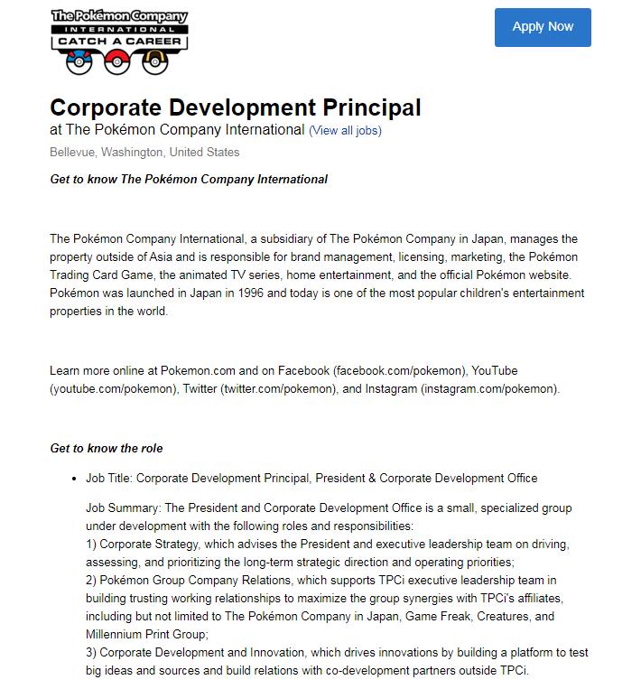 Twitter用戶“pory_leeks”是第一個看到該招聘帖子的人,很快,這則帖子引起了整個寶可夢社區(qū)的注意,通過該職位要求,我們可以看出,成為企業(yè)發(fā)展負責人的資格之一是“對Web 3技術(shù)有深入了解和理解,包括區(qū)塊鏈技術(shù)和NFT,以及元宇宙”。另外,候選人還必須“與上述技術(shù)領(lǐng)域(Web3和元宇宙)的投資者和企業(yè)家有著密切的聯(lián)系”。