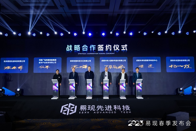 同時(shí),易現(xiàn)與河南廣電傳媒控股集團(tuán)數(shù)字產(chǎn)業(yè)投資有限公司、深圳創(chuàng)壹科技文化有限公司、成都中科大旗軟件股份有限公司、成都未來(lái)場(chǎng)景數(shù)字科技中心、深圳市光蕊科技有限公司分別簽訂戰(zhàn)略合作協(xié)議,將發(fā)揮各自領(lǐng)域的核心優(yōu)勢(shì)、資源互補(bǔ),作為生態(tài)合作伙伴共同推動(dòng)XR產(chǎn)業(yè)的發(fā)展。