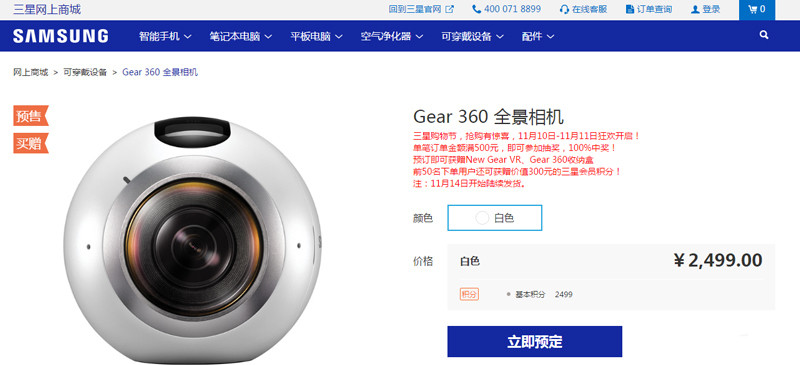 對于 VR 行業(yè),當然不少 VR 硬件,VR 內(nèi)容都有提供應節(jié)優(yōu)惠。日前,國行 Gear 360 也趁雙十一在三星中國官網(wǎng)發(fā)起了一輪預售優(yōu)惠活動。國行 Gear 360 售價 2499 元,11 月 14 日開始陸續(xù)發(fā)貨。