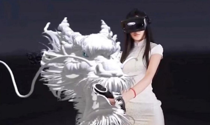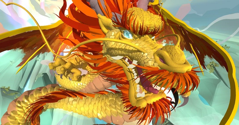 幾次嘗試之后,毛思懿不再局限于將平面作品三維化,開始在VR里創(chuàng)作全新的作品。這時,她想到了從小夢見的那條白龍。為了和夢里的龍同框「互動」,她花了近20天時間研究MR拍攝,并首次真人出鏡。