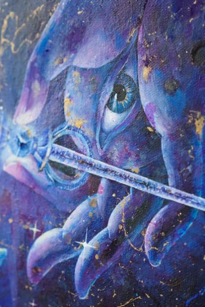 2021年,毛思懿創(chuàng)作了不少作品,主題多種多樣,包括「山海經(jīng)里的上古神獸」「哈利波特」「中秋祝?!沟鹊?,也開始有了商業(yè)合作創(chuàng)作的作品,比如和京東及非物質(zhì)文化遺產(chǎn)保護中心合作的唐卡VR繪畫作品。