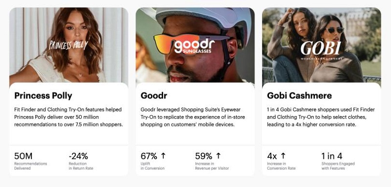 體驗(yàn)交付:企業(yè)可將AR Try-On、Fit Finder和交互式3D Viewer技術(shù)集成至應(yīng)用和網(wǎng)站,使購物者能夠接收準(zhǔn)確的合身和尺碼建議,在增強(qiáng)現(xiàn)實(shí)中試穿或查看產(chǎn)品,并能與3D產(chǎn)品互動(dòng)。