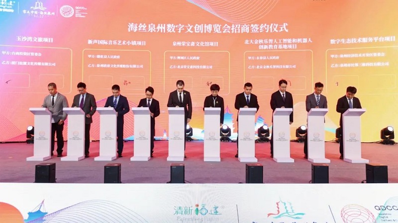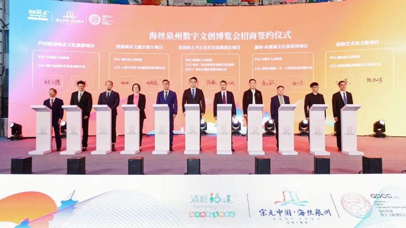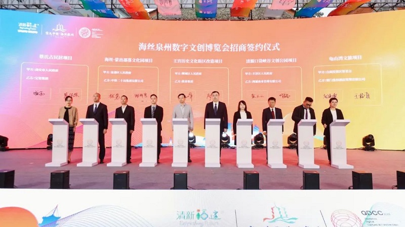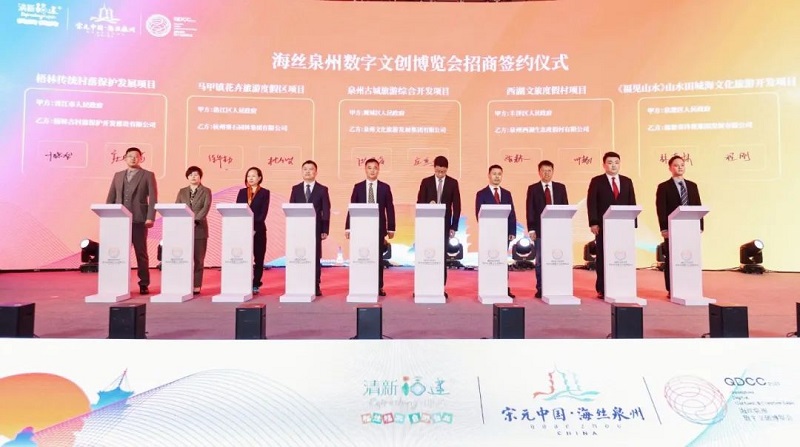 現(xiàn)場還舉行了招商項(xiàng)目集中簽約儀式,泉州各縣(市、區(qū))現(xiàn)場簽約項(xiàng)目20個(gè),總投資達(dá)214億元,主要涉及文旅經(jīng)濟(jì)、數(shù)字經(jīng)濟(jì)等領(lǐng)域。其中,鯉城區(qū)完成簽約項(xiàng)目4個(gè),分別為泉州古城旅游綜合開發(fā)項(xiàng)目、美團(tuán)線上平臺及東呈高端酒店項(xiàng)目、泉州榮寶齋文化館項(xiàng)目和王宮歷史文化街區(qū)改造項(xiàng)目。