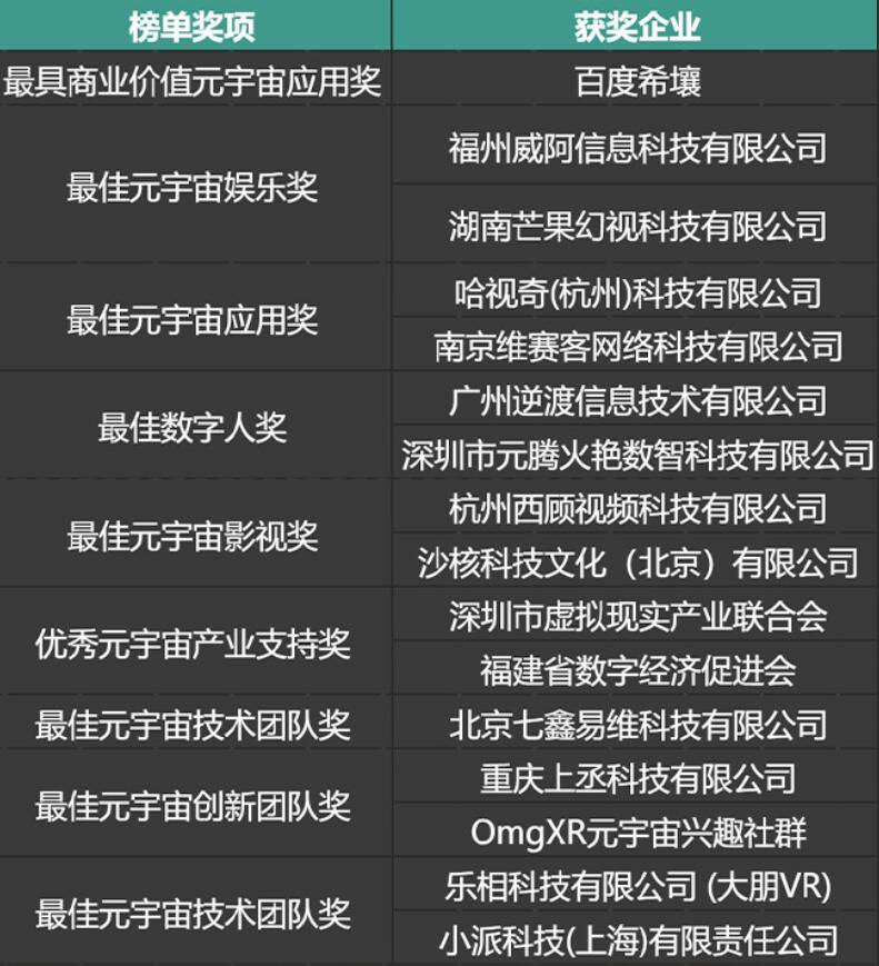“數(shù)字海絲·元宇宙獎”榜單獲獎企業(yè)