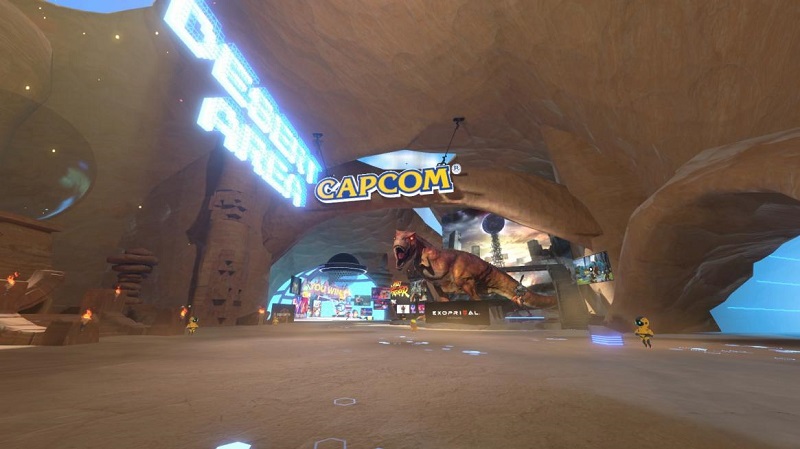 除了具有科幻風(fēng)的中心區(qū)域外,還設(shè)置了三種不同風(fēng)格的主題區(qū)域,包括沙漠洞窟、森林峽谷以及地下礦洞,參展商的展廳各自分布在不同區(qū)域。用戶在觀展過程中,可以通過完成各種任務(wù)以推動(dòng)主線發(fā)展。