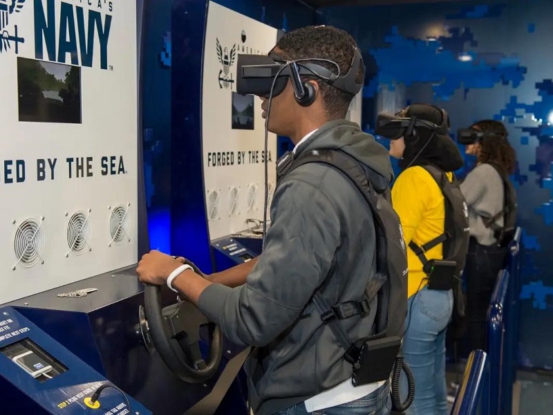 美國海軍在3月31日至4月2日于2023 Sun ‘n Fun航空航天博覽會上展示了一款可模擬海豹突擊隊高速任務(wù)的虛擬現(xiàn)實體驗裝置“尼米茲號”。