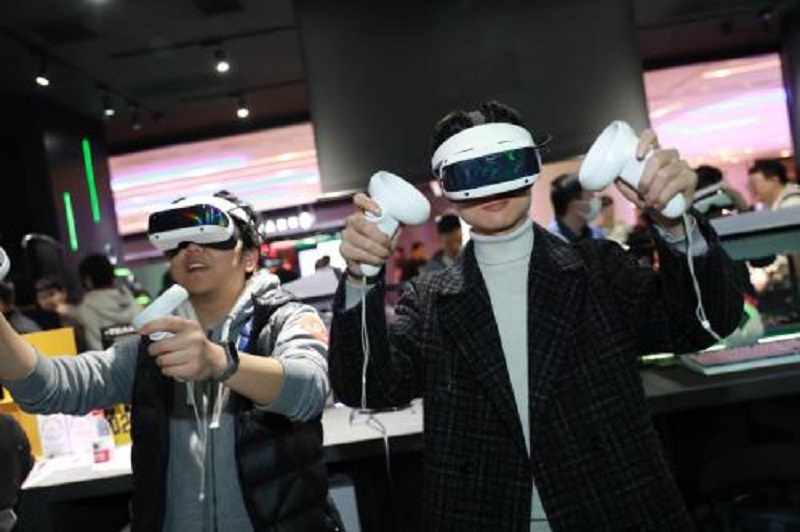上海Razer雷蛇陸家嘴中心店內(nèi),B站百萬粉絲UP“守拙君”與知名游戲UP“沈奕辰”各帶一隊人馬,頭戴大朋VR E4,在虛擬空間你攻我守,酣戰(zhàn)地不亦樂乎……