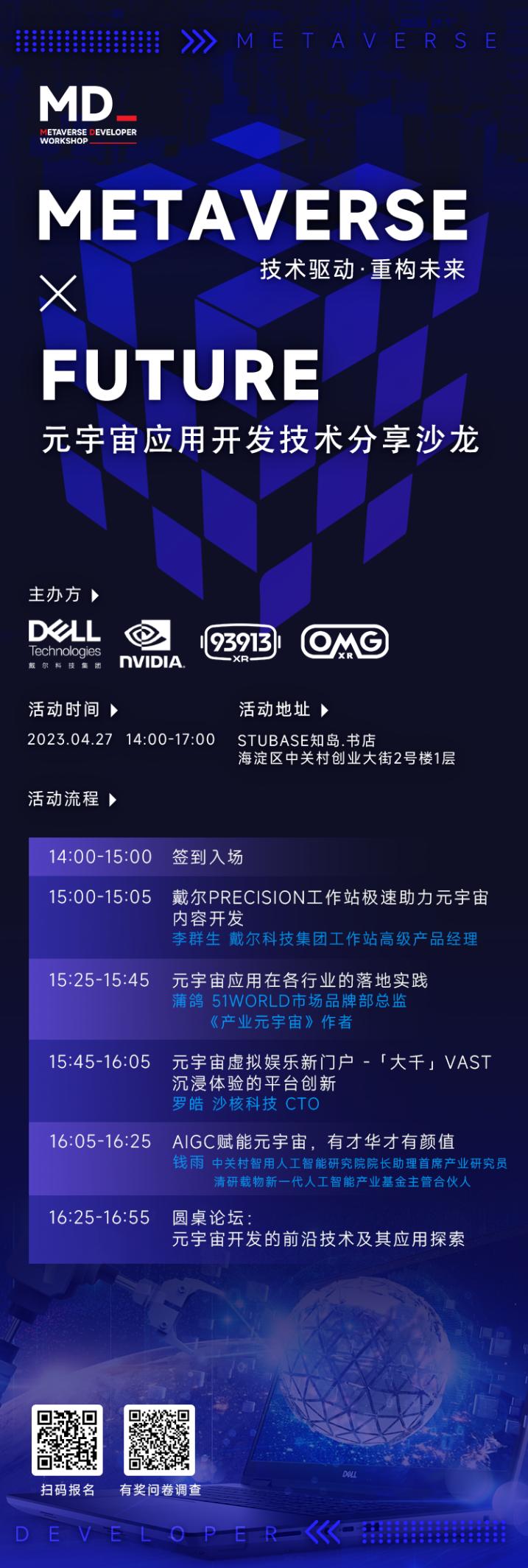 為幫助開發(fā)者更好的在元宇宙浪潮中抓住騰飛機(jī)遇,戴爾聯(lián)合英偉達(dá)、93913虛擬現(xiàn)實(shí)網(wǎng)、OmgXR元宇宙興趣社區(qū),邀請知名投資機(jī)構(gòu)、行業(yè)頭部企業(yè)共同舉辦「元宇宙應(yīng)用開發(fā)技術(shù)分享沙龍」,就新形勢下元宇宙應(yīng)用開發(fā)的技術(shù)展開分享與討論,助力元宇宙領(lǐng)域的內(nèi)容開發(fā)者實(shí)現(xiàn)更高質(zhì)量的發(fā)展。