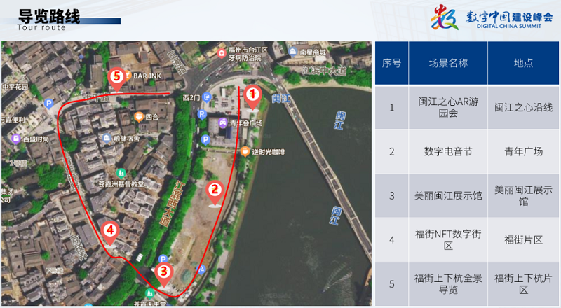 第六屆數字中國建設峰會期間,臺江區(qū)謀劃以“數智未來·青年有為”為主題,以“閩江之心–福街–上下杭”為主要參觀體驗路線,融合科技與時尚的數字應用體驗場景。