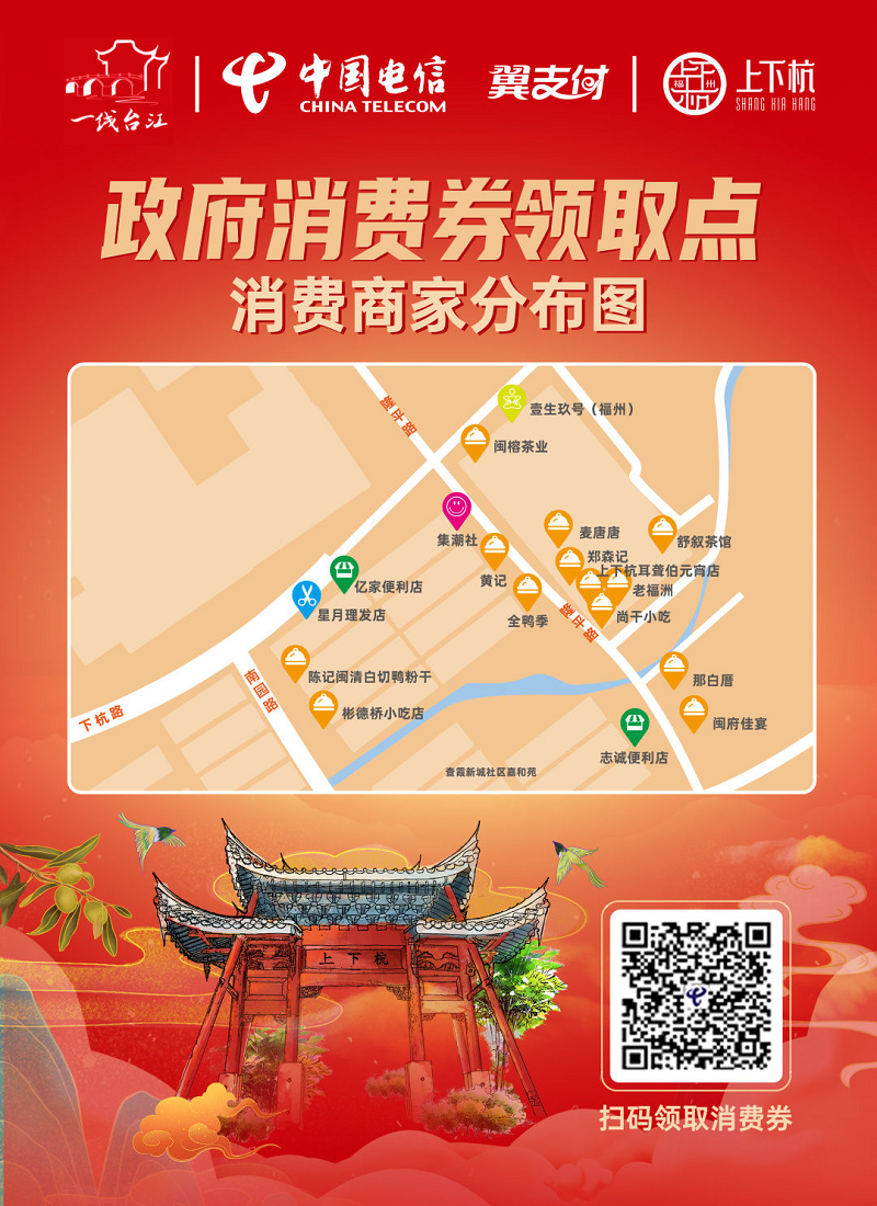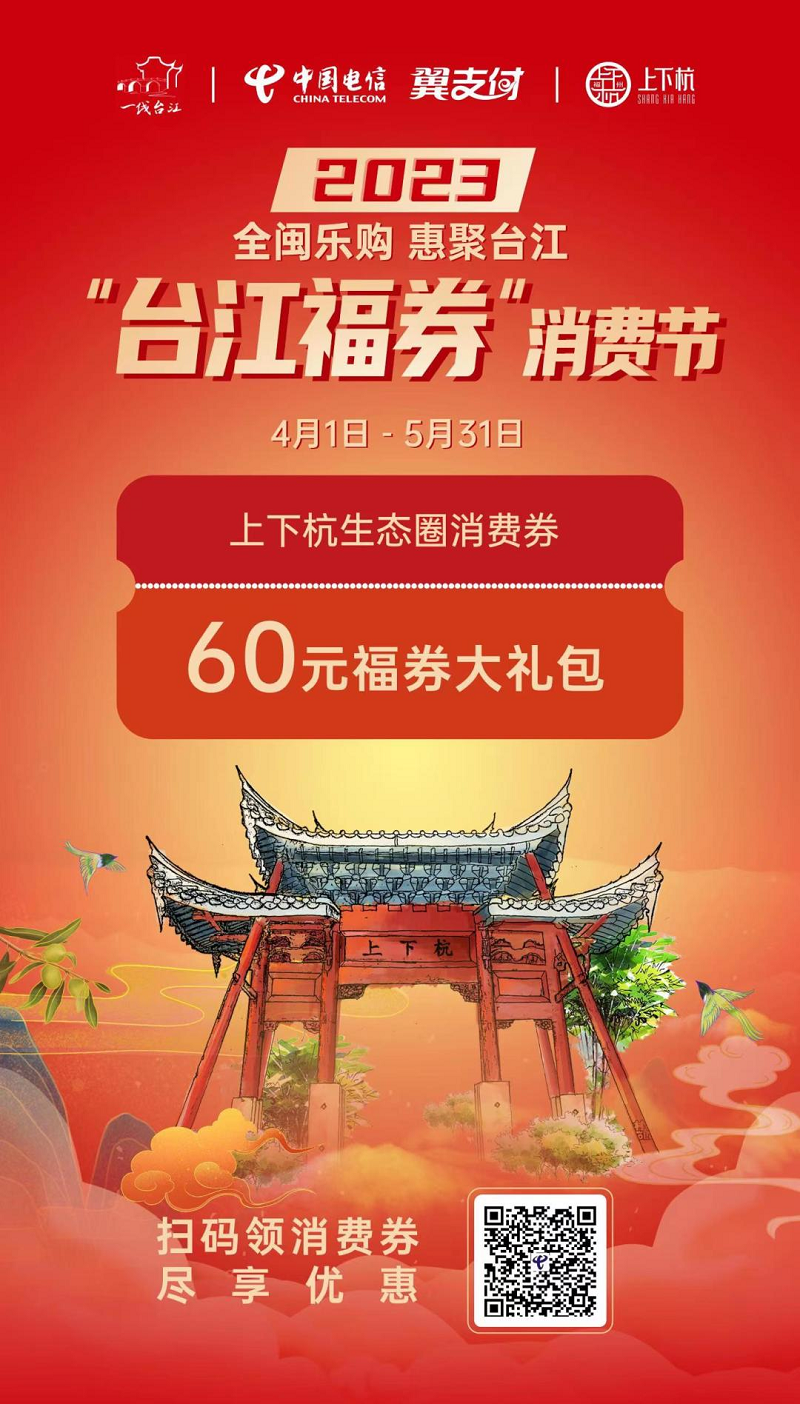 圍繞上下杭生態(tài)圈發(fā)放60元福券大禮包(包含一張滿60立減30元商戶消費券、一張滿30立減15元商戶消費券與一張滿15.01立減15元的福州電報局禮品消費券)。