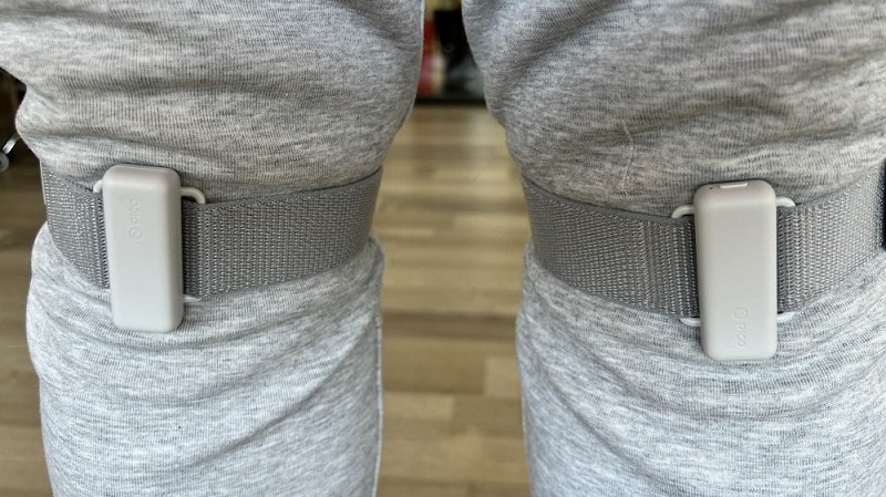 從產(chǎn)品外觀來說,追蹤器的大小和一個智能手環(huán)相似,重量僅為22g,綁在腿上基本沒什么負重感。根據(jù)說明書的提示,我把追蹤器綁在膝蓋正下方位置,使用時緊綁效果為佳,否則追蹤器很有可能會順著褲子掉下去,因此裸腿使用效果或許更好。