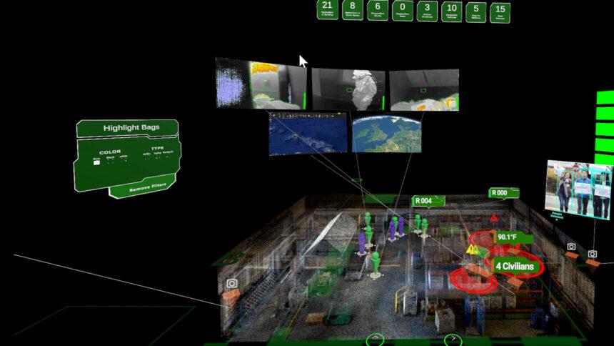 “我們可以提供一個(gè)體積很小的指揮中心,使你仿佛置身于現(xiàn)實(shí)指揮所?!盉und說(shuō),此外,虛擬指揮中心支持與真實(shí)指揮中心數(shù)據(jù)互聯(lián)。例如,指揮官可基于VR頭顯查看隨身攝像頭或監(jiān)控?cái)z像頭拍攝的重要圖像,從而快速標(biāo)記并發(fā)送至指揮中心同僚。
