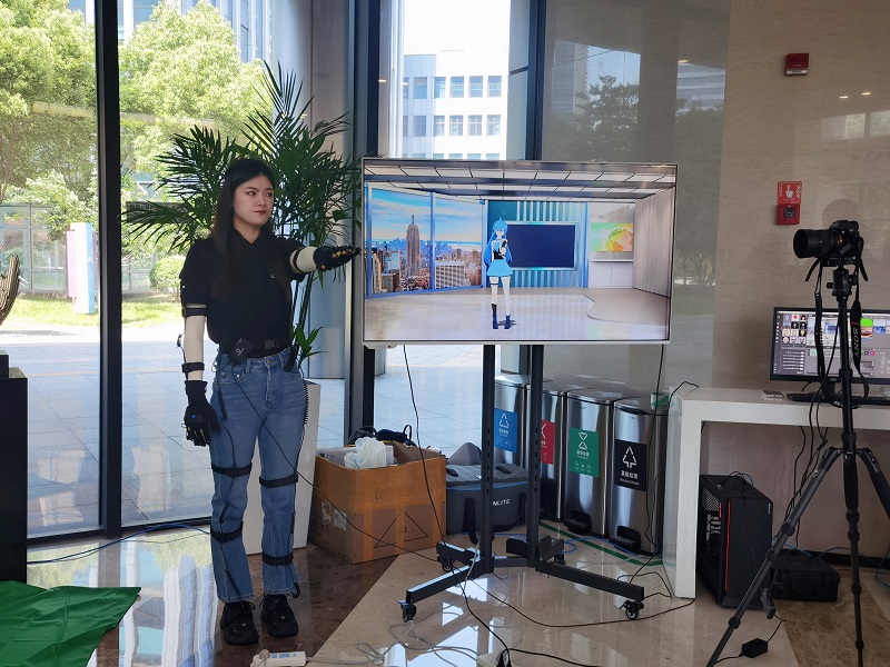還有來自超級隊長的1款動作捕捉設(shè)備,運用面部捕捉、動作捕捉、聲音處理等一系列新興計算機技術(shù),將演員的面部表情及動作套用在3D或2D 模型上,從而實現(xiàn)虛擬人物形象在視頻和社交網(wǎng)站中進行活動。非常適合企業(yè)機構(gòu)進行線上線下發(fā)布會、電商銷售、路演、授課等直播活動。