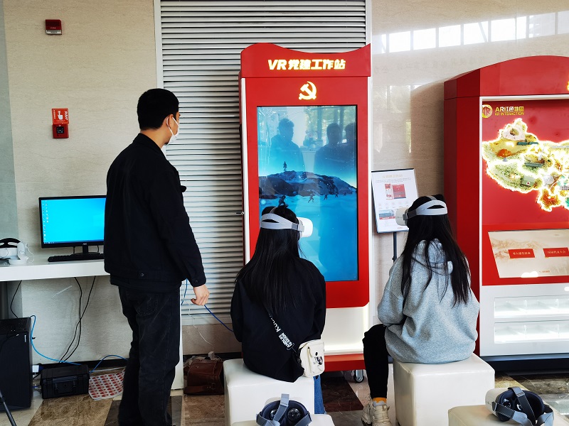 新潮的體驗方式自然離不開VR/AR數(shù)字技術(shù)的支撐,來自超級隊長的“三件套”數(shù)字黨建設(shè)備集體亮相現(xiàn)場。VR黨建工作站、VR紅色云游、AR紅色地圖為大家?guī)砣碌臄?shù)字黨建體驗方式,帶大家沉浸在紅色文化場景中體驗并高效學(xué)習(xí)。