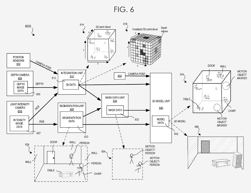 而蘋果的發(fā)明涵蓋了各種實(shí)現(xiàn),包括生成三維 (3D) 模型的設(shè)備、系統(tǒng)和方法,該模型使用深度數(shù)據(jù)和從RGB圖像數(shù)據(jù)生成的對象掩碼排除了可能移動(dòng)的人或其他對象。3D模型基于物理環(huán)境的圖像、在物理環(huán)境中檢測到的深度信息以及用于跟蹤設(shè)備/深度相機(jī)的特定位置和方向的其他信息生成。