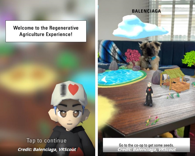 Balenciaga在再生農(nóng)業(yè)體驗中使用AR技術(shù)來教育用戶改善土壤健康的正確技術(shù),包括間作、作物輪作、農(nóng)業(yè)廢棄物和堆肥。