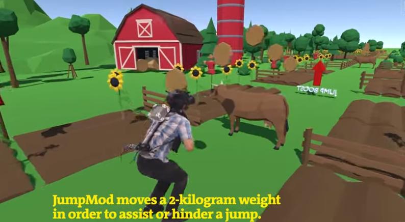 Lopes和同事基于JumpMod在VR模擬中創(chuàng)建了各種效果。例如在游戲進行中,玩家收集了一個令牌,可使他們能夠跳得更高;通過在玩家離開地面時向上拉動背包,JumpMod使得玩家感覺好像跳得更高了。