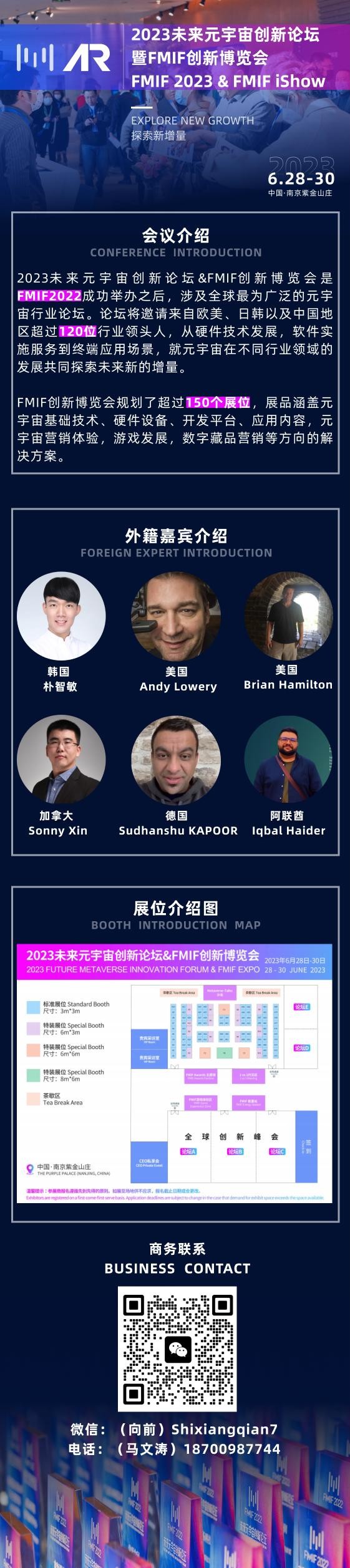 2023未來元宇宙創(chuàng)新論壇暨FMIF創(chuàng)新博覽會是FMIF2022成功舉辦之后,涉及全球最為廣泛的元宇宙行業(yè)論壇。2023FMIF全面升級,以“全球創(chuàng)新,領(lǐng)變未來,探索新增量”為主題,在南京紫金山莊召開。本次展會將視野升維,攜手歐美、日韓以及中國地區(qū)超過120+位行業(yè)領(lǐng)袖人物,從硬件技術(shù)發(fā)展,軟件實施服務(wù)到終端應(yīng)用場景,就元宇宙在不同行業(yè)領(lǐng)域的發(fā)展共同探索未來新的增量。