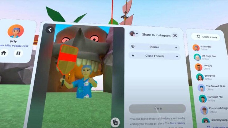 借助這項(xiàng)功能,用戶可以將他們虛擬體驗(yàn)的照片和視頻直接分享到他們的Instagram和Facebook賬號(hào)。照片共享功能是新的v108更新的一部分,可以通過媒體庫(kù)或「Horizon Camera」功能訪問。