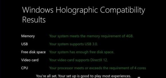 在Windows10的最新測試版本中,用戶需要運行“Windows Holographic試跑”app,用來測試電腦的配置是否達標。