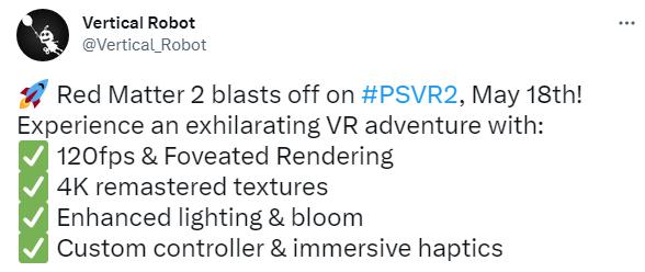 在宣布「Red Matter 2」PS VR2版近三周后,西班牙游戲工作室Vertical Robot確認該版本將于5月18日發(fā)布。