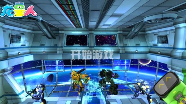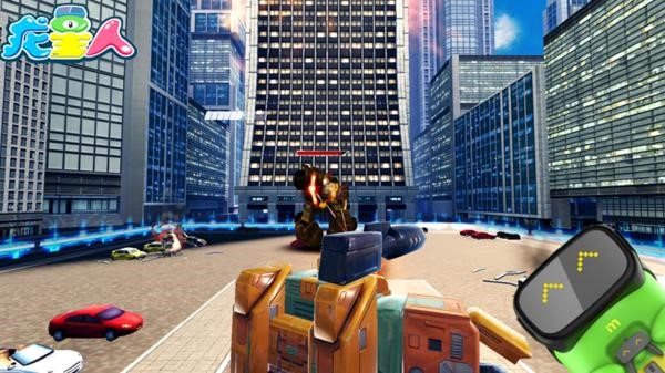 游戲操作:小盆友通過龍星人的手持式VR頭顯的左鍵選擇、右鍵確認(rèn)后會(huì)進(jìn)入到變形金剛集合點(diǎn),再按任意鍵開始戰(zhàn)斗。移動(dòng)視角可將槍炮對(duì)準(zhǔn)敵軍,按手柄上的左右鍵可分別開炮和開槍。攻破一個(gè)點(diǎn)后變形金剛會(huì)變形為汽車駛?cè)肓硪粋€(gè)點(diǎn)繼續(xù)戰(zhàn)斗,最終在廣場(chǎng)與敵方的指揮官“暴雷”進(jìn)行決斗。