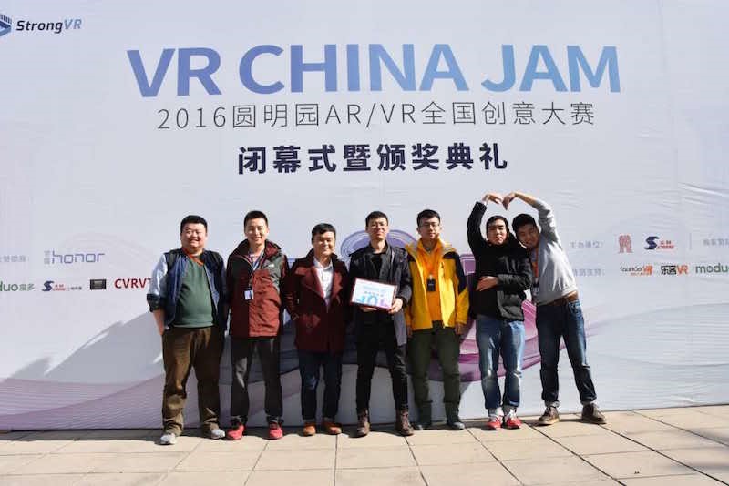 簡(jiǎn)單聊了聊產(chǎn)品,我就問(wèn)了問(wèn)董航關(guān)于前段時(shí)間參加圓明園創(chuàng)作大賽的事情。董航告訴我,其實(shí)這次參賽作品的制作時(shí)間非常緊張。“最開(kāi)始我對(duì)于是否參賽是猶豫的,主要是因?yàn)闀r(shí)間太緊張了,不過(guò)后來(lái)我們還是決定參加。一方面是我們認(rèn)為這么做比較有意義,通過(guò)對(duì)一些古代遺跡的復(fù)原,讓用戶可以感受到它們輝煌時(shí)期的存在;另一方面我們認(rèn)為這也是一個(gè)挑戰(zhàn),而我們?cè)敢馊ソ邮芴魬?zhàn)。我們?cè)诓坏?8天時(shí)間里完成了我們的作品《守衛(wèi)圓明園》,它是一款VR塔防射擊游戲,玩家扮演圓明園的守衛(wèi)與前來(lái)偷盜的盜賊作戰(zhàn),保衛(wèi)圓明園的獸首。在十幾天時(shí)間里,我們完全是從零開(kāi)始,從美術(shù)、模型、音效、程序到海報(bào),確實(shí)非常挑戰(zhàn)。最終我們獲得了最佳作品獎(jiǎng),現(xiàn)在想來(lái)還是很欣慰的。“