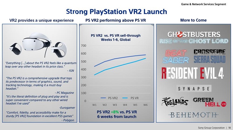 在業(yè)務(wù)部門(mén)會(huì)議上,索尼證實(shí)PS VR2發(fā)布后六周內(nèi)售出了近60萬(wàn)臺(tái)。