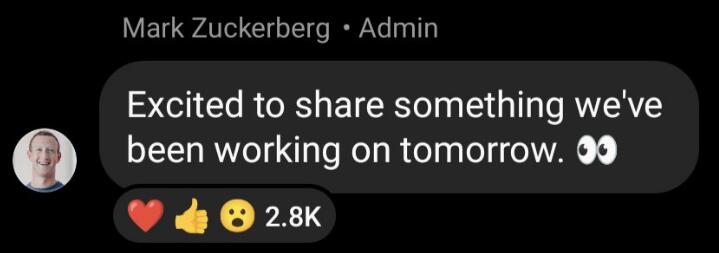 扎克伯格在Instagram發(fā)布了一張自己低頭視物的照片,照片標(biāo)題為“分享我們一直在做的事情”,并附上了倒計(jì)時(shí)。