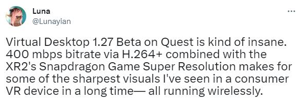 「Virtual Desktop」1.27.1版仍在Beta測(cè)試中,但測(cè)試人員已經(jīng)在Twitter和其他渠道上對(duì)新版本贊不絕口。