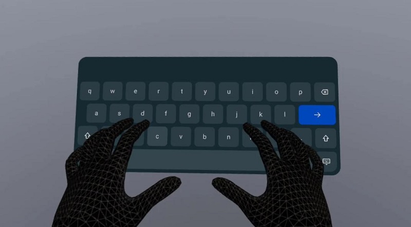 在Meta Quest上,開(kāi)發(fā)者自2020年中以來(lái)已經(jīng)能夠調(diào)出Meta系統(tǒng)軟件使用的虛擬鍵盤,但這看起來(lái)像是一個(gè)固定位置的粗略覆蓋,而無(wú)論其他虛擬對(duì)象具體位置,都會(huì)在應(yīng)用程序上方呈現(xiàn),并基于半透明系統(tǒng)“幽靈手”以替代用戶手部,這其實(shí)感覺(jué)并不自然。