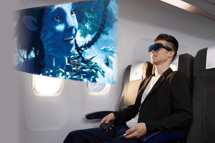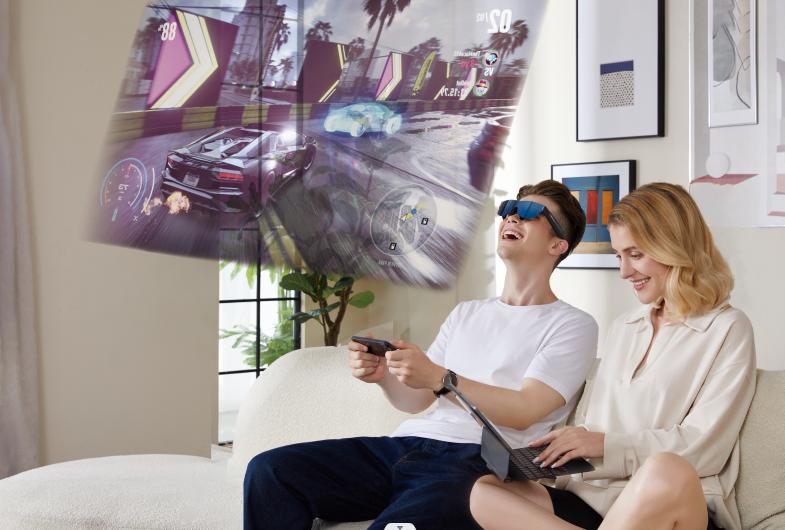 這款產(chǎn)品的外觀是一副精致美觀的太陽(yáng)鏡,用戶(hù)在戴上這款產(chǎn)品后也并不妨礙查看現(xiàn)實(shí)世界的情況。在這樣一個(gè)小小的太陽(yáng)鏡中,藏著一個(gè)私人IMAX巨幕影院,用戶(hù)可在眼鏡中享受150英寸高清巨幕的觀影體驗(yàn),即使在復(fù)雜光線(xiàn)環(huán)境下也絲毫不影響觀影體驗(yàn)。