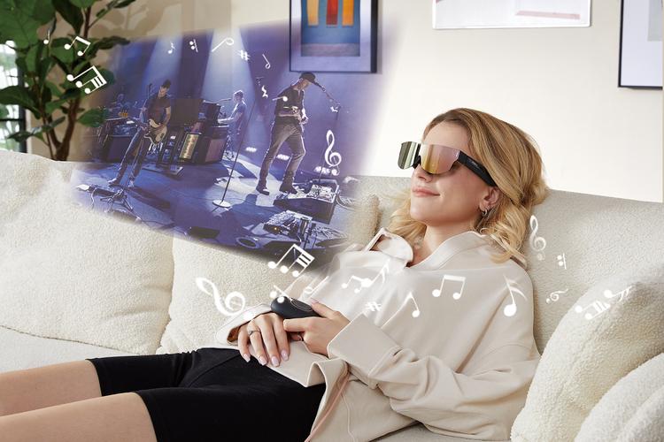 與此同時(shí),這款視聽(tīng)眼鏡的眼鏡腿里搭載兩個(gè)Hi-Fi級(jí)別高保真音效的回旋式音倉(cāng),搭載聲音定向傳導(dǎo)技術(shù),聲音更靠近耳朵,不會(huì)對(duì)外擴(kuò)散;此外,它采用單向透光磁吸流光鏡片,從外面無(wú)法看到眼鏡內(nèi)播放的內(nèi)容,私密性極高。產(chǎn)品還兼容0~600度的近視,兼容蘋(píng)果安卓手機(jī)、X-box、Switch、無(wú)人機(jī)等傳統(tǒng)物理屏幕一鍵投屏。