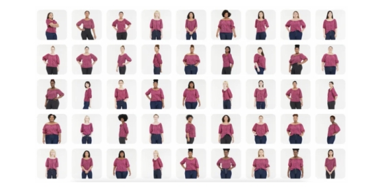 谷歌產(chǎn)品管理高級總監(jiān)Lilian Rincon表示:“我們新的生成式AI模型可以只拍攝一張服裝圖像,便能準(zhǔn)確反映在各種人體姿勢、各種真實模型上懸垂、折疊、緊貼、拉伸以及皺紋和陰影,為此我們特意挑選了XXS-4XL碼的真實模特,以代表不同的膚色、體型、種族和頭發(fā)類型?!?/p>