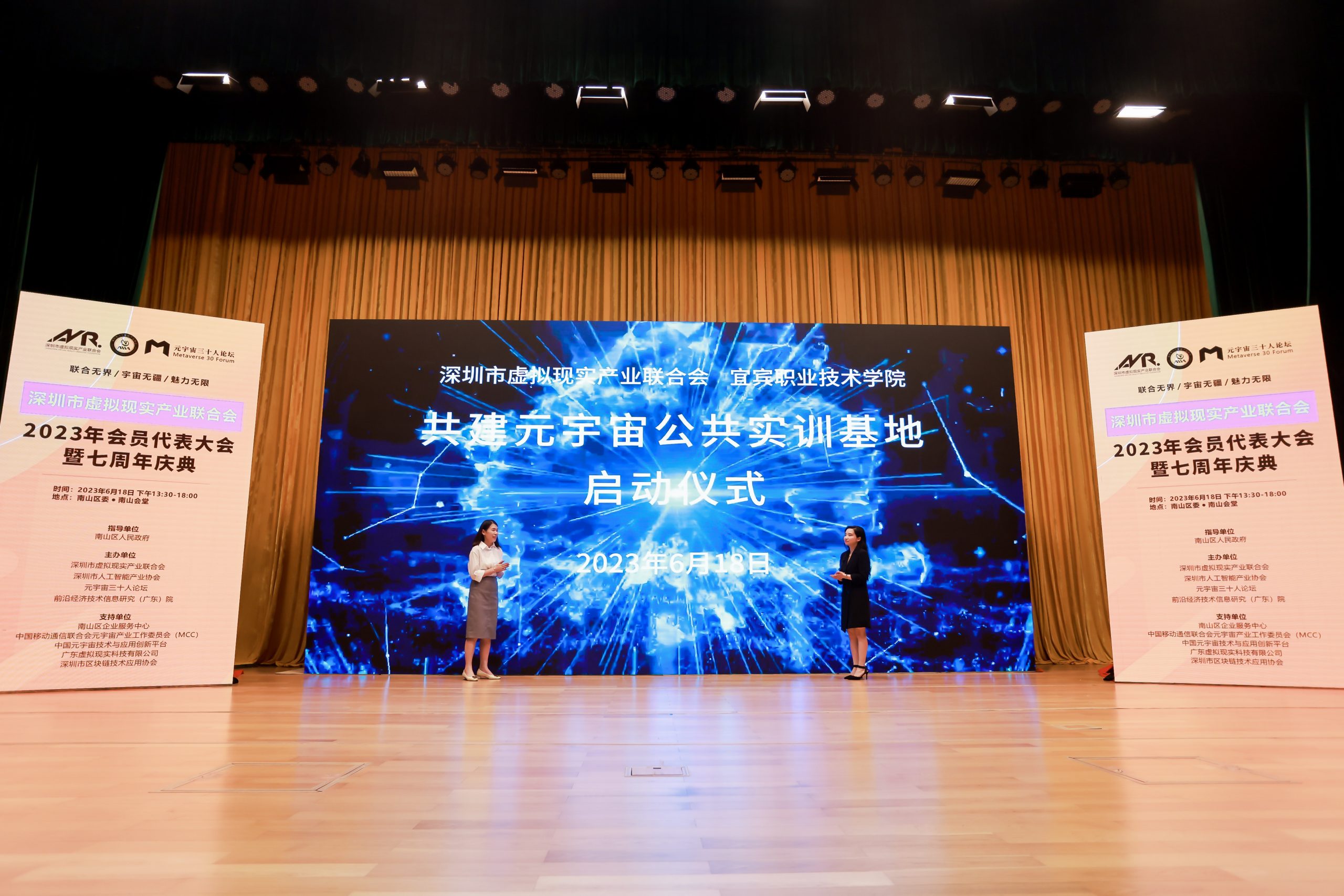 在付孟姣秘書長的工作報(bào)告中提到,深圳市虛擬現(xiàn)實(shí)產(chǎn)業(yè)聯(lián)合會(huì)與宜賓有非常密切的合作,大會(huì)上也與宜賓職業(yè)技術(shù)學(xué)院黨委常委、宣傳統(tǒng)戰(zhàn)部部長葉茜一起宣布深圳市虛擬現(xiàn)實(shí)產(chǎn)業(yè)聯(lián)合會(huì)與宜賓職業(yè)技術(shù)學(xué)院共建元宇宙公共實(shí)訓(xùn)基地正式啟動(dòng)。