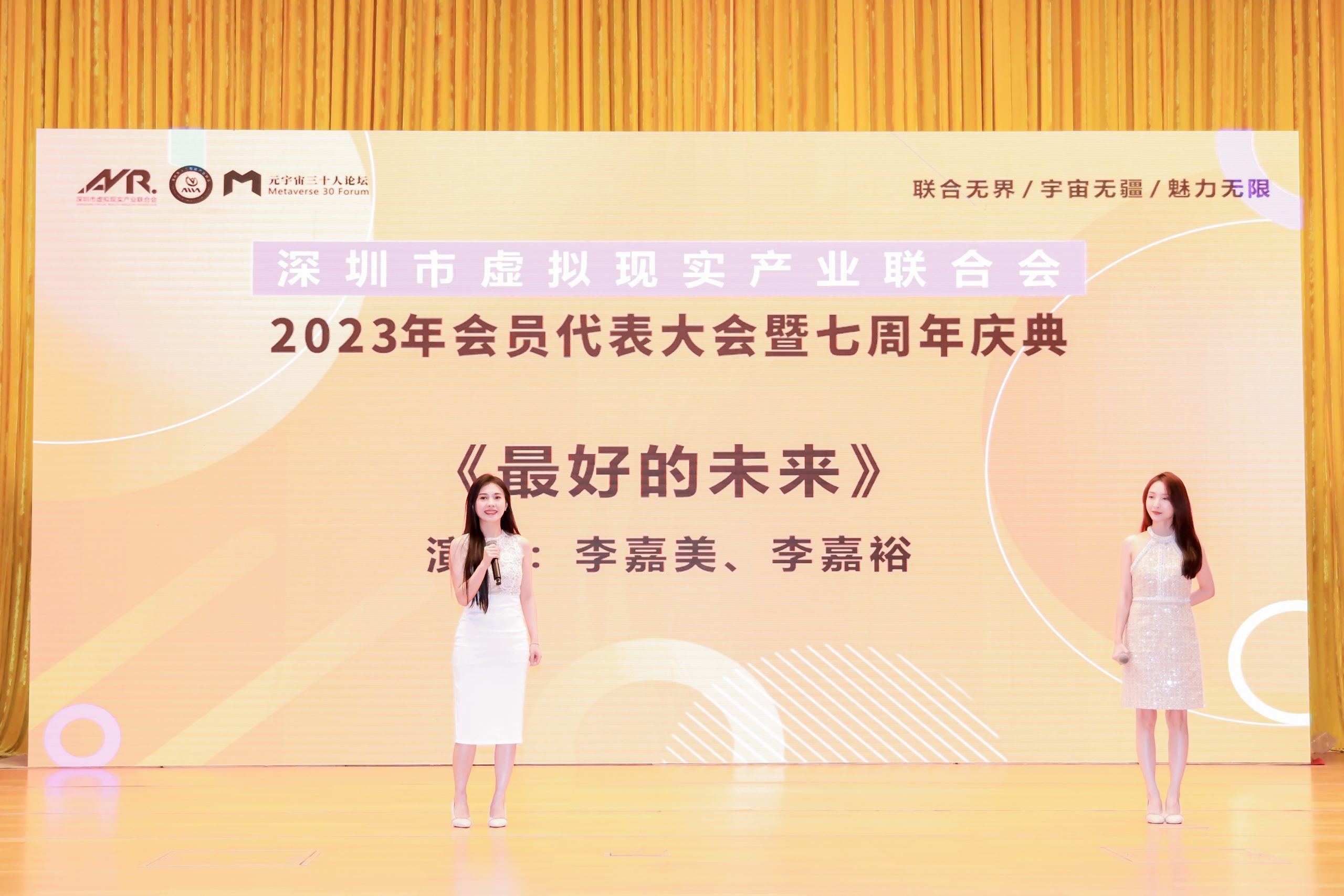 5位行業(yè)大咖的分享過后,由歌手李嘉美、李嘉裕為我們演唱聯(lián)合會(huì)會(huì)歌《最好的未來》,這首歌由會(huì)長譚貽國親自作詞,從歌詞中就可以體現(xiàn)他對(duì)虛擬現(xiàn)實(shí)、元宇宙行業(yè)的期待,我們相信,元宇宙行業(yè)一定會(huì)擁有最好的未來。