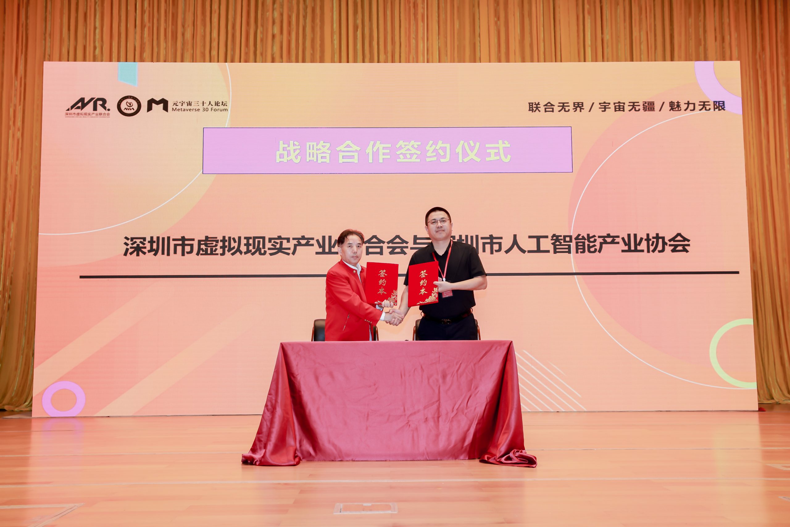 為了進(jìn)一步擴(kuò)大協(xié)會(huì)的影響力,更好地推動(dòng)行業(yè)的發(fā)展,深圳市虛擬現(xiàn)實(shí)產(chǎn)業(yè)聯(lián)合會(huì)與宜賓職業(yè)技術(shù)學(xué)院、元宇宙三十人論壇、深圳市湖湘文化促進(jìn)會(huì)、深圳市人工智能產(chǎn)業(yè)協(xié)會(huì)達(dá)成戰(zhàn)略合作,在會(huì)議現(xiàn)場簽訂戰(zhàn)略合作協(xié)議。