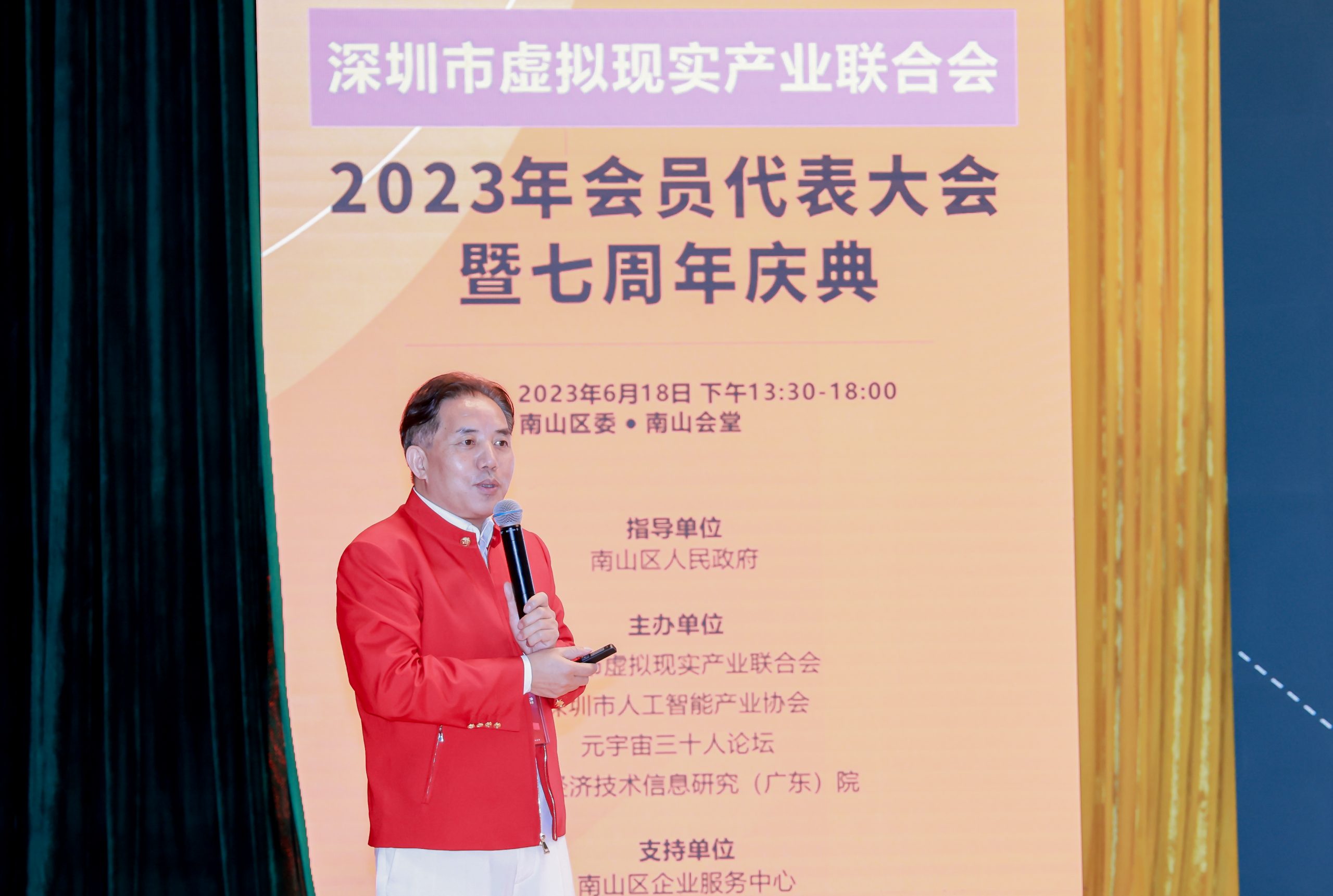6月18日下午,深圳市虛擬現(xiàn)實(shí)產(chǎn)業(yè)聯(lián)合會(huì)2023年會(huì)員代表大會(huì)暨七周年慶典在深圳南山勝利舉行。