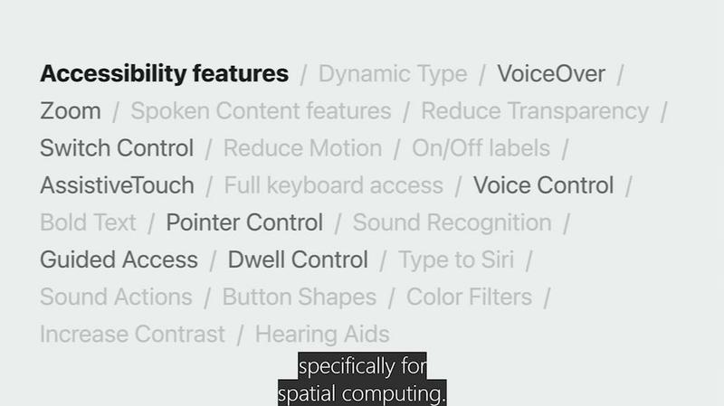 ▲高亮的部分,是蘋果專為空間計算重新設計的輔助技術