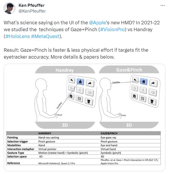 在Apple Vision Pro公布之前,研究人員就一直在研究蘋果頭顯的操控方式及其有效性。