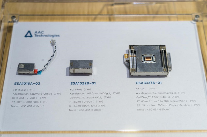 本次MWC上海,瑞聲科技攜仿生振感馬達CSA0916、刀鋒級線性馬達ELA1019、馬達驅(qū)動RT6010重磅亮相,并且均已實現(xiàn)了量產(chǎn)和商用。其中仿生振感馬達是目前安卓體積最大、振動量最強的超寬頻馬達,并且已在一加11上量產(chǎn);刀鋒級線性馬達薄至2mm,同時又能保證強勁振感,目前已經(jīng)在輕薄化終端產(chǎn)品上商用;AAC首款自研芯片—馬達驅(qū)動RT6010也在此次展會重磅亮相,RT6010驅(qū)動能力強,配置了自動剎車波形和ISRC算法,充分發(fā)揮馬達最佳性能,近期RT6010已經(jīng)在拇指相機Insta360 Go3上實現(xiàn)量產(chǎn),標志著瑞聲科技硬件、軟件、芯片融合的觸感解決方案實現(xiàn)全鏈路打通,為用戶帶來更細膩沉浸的觸感體驗。此外,搭載RichTap2.0首次實現(xiàn)兩種振感疊加的一加11、RichTap開發(fā)套件、PC端RichTap Creator Pro和移動端Creator App、手柄和壓感觸控板Demo悉數(shù)亮相展會,為企業(yè)用戶帶來豐富的觸感效果設(shè)計和硬件設(shè)計參考。