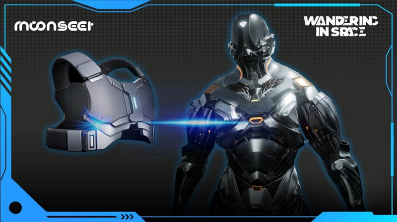 在本次展會(huì)中,MOONSEER可穿戴體感服將搭配自研VR游戲《流浪太空》等內(nèi)容首次亮相,玩家可以通過身體姿態(tài)控制移動(dòng),并還原中彈、受創(chuàng)時(shí)的反饋,還可體驗(yàn)語音控制、觸摸感應(yīng)等多功能。