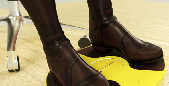 3DRudder看上去像是一張黑膠唱片,唱片下方有一個(gè)突起的半球,實(shí)際上它是一臺(tái)VR游戲移動(dòng)控制器。3DRudder有四個(gè)功能:向左或右晃能射擊;一只腳向前一只腳向后能移動(dòng)視角;雙腳扭動(dòng),能調(diào)整視角范圍;而前后傾還能放大或縮小畫面。