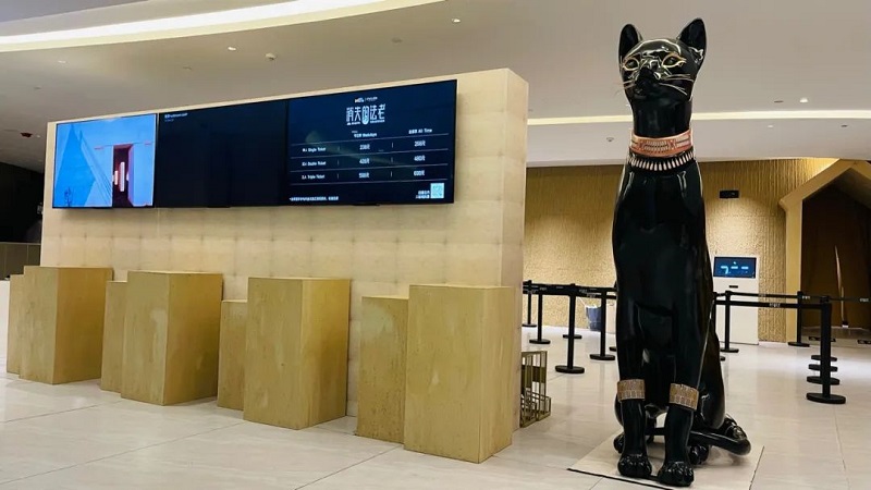 一進(jìn)入展館,首先映入眼簾的,是古埃及文化的象征獅身人面像,以及古埃及神話中的貓神巴斯泰托女神(Bastet,也稱作巴斯特或者貝斯特)。這也預(yù)示了這趟埃及的穿越之旅,將與它們產(chǎn)生不解之緣。