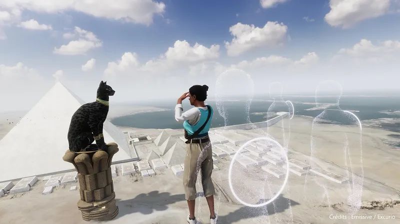 這種體驗(yàn)在不僅避免了人與人在VR之中發(fā)生的碰撞,還帶來(lái)了與現(xiàn)實(shí)中旅游十分接近的感受——讓觀眾在沉浸于埃及金字塔與古埃及文化的同時(shí),也不斷的與其他「游客」擦肩而過(guò),有效的緩解了VR與他人隔絕的疏離感。