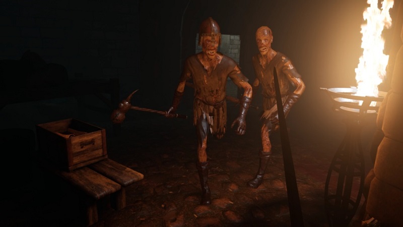 在題材上本作與黑魂保持一致,采用歐美黑暗魔幻風(fēng)格的世界觀設(shè)定。不過(guò)與目前大多數(shù)此類題材的VR游戲不同,在具體的美術(shù)設(shè)計(jì)上,本作并沒(méi)有選擇較為容易實(shí)現(xiàn)的卡通風(fēng)格,而是選擇了實(shí)現(xiàn)難度最大的寫實(shí)風(fēng)格。在我開始游戲不久,本作的畫面表現(xiàn)就給我留下了極深的印象:無(wú)論是陰森恐怖的地牢,還是高大神圣的修道院,出色的畫質(zhì)和精細(xì)的模型無(wú)疑增強(qiáng)了游戲的沉浸感和品質(zhì)感,讓我愿意在這個(gè)“非常真實(shí)”的世界里多花一些時(shí)間進(jìn)行探索。