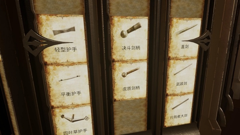 除了角色,本作的武器和道具也值得特別說(shuō)明。玩家可以在修道院的鐵匠那里打造專屬于自己的武器,通過(guò)一個(gè)可以旋轉(zhuǎn)的裝置,我可以選擇武器的類型和對(duì)應(yīng)的部件,比如長(zhǎng)劍類武器就包括劍刃、劍柄和護(hù)手三個(gè)部分,而不同武器及其部件的鍛造圖紙需要我在探索地圖的過(guò)程中撿取并解鎖。這個(gè)設(shè)計(jì)增加了游戲的豐富度和可玩性,讓玩家在緊張戰(zhàn)斗之余還可以獲得更多的探索和收集樂(lè)趣,而武器的模型精度同樣很高,讓我有一種想要反復(fù)把玩的感覺(jué)。在道具方面,目前我已經(jīng)看到了體力恢復(fù)藥瓶(紅瓶)、魔力恢復(fù)藥瓶(藍(lán)瓶)和類似手雷的投擲物。有趣的是,使用這些道具的體驗(yàn)都很真實(shí),比如我需要拔掉紅瓶的塞子,然后將紅瓶靠近嘴部做出喝藥的動(dòng)作,如此才能恢復(fù)我的體力值,而投擲物的使用也是如此,先拔掉引信,然后算準(zhǔn)時(shí)間投向敵人,這樣才能炸到對(duì)方。