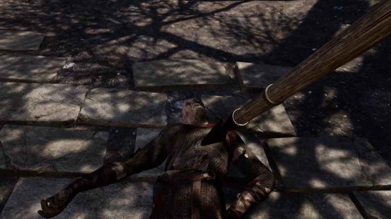 除了彈反,本作的戰(zhàn)斗系統(tǒng)還有一點(diǎn)非常追求真實(shí),那就是打擊部位的設(shè)計(jì)。在我面對(duì)的不同敵人之中,一些敵人只是穿著單薄的布衣,而一些敵人則頭戴頭盔、身披鎖甲,甚至還有全身板甲的騎士。針對(duì)不同的敵人,我就必須采取不同的策略。對(duì)付布衣的敵人很簡(jiǎn)單,全身上下都是弱點(diǎn),最佳的攻擊部位就是頭部和腹部,只要有效命中,就會(huì)很容易將對(duì)方擊倒,然后再補(bǔ)幾刀就可以輕松完成擊殺。而對(duì)于穿著鎧甲的敵人則需要仔細(xì)觀察對(duì)方弱點(diǎn),比如某類敵人的鎖甲在腹部位置沒(méi)有覆蓋,這其實(shí)就是制作組為玩家創(chuàng)造的攻擊點(diǎn)。而當(dāng)我面對(duì)全身板甲的騎士正在犯愁時(shí),突然發(fā)現(xiàn)他的大腿部分其實(shí)沒(méi)有覆蓋板甲,真的是妙?。橹谱鹘M鼓掌)!模擬真實(shí)的戰(zhàn)斗設(shè)計(jì)毫無(wú)疑問(wèn)提高了游戲的難度,同時(shí)也讓玩家不得不針對(duì)敵人思考自己的戰(zhàn)斗策略,無(wú)法通過(guò)簡(jiǎn)單粗暴的方式“亂拳打死老師傅”,這也是本作充滿硬核游戲的高級(jí)感的一種體現(xiàn)。